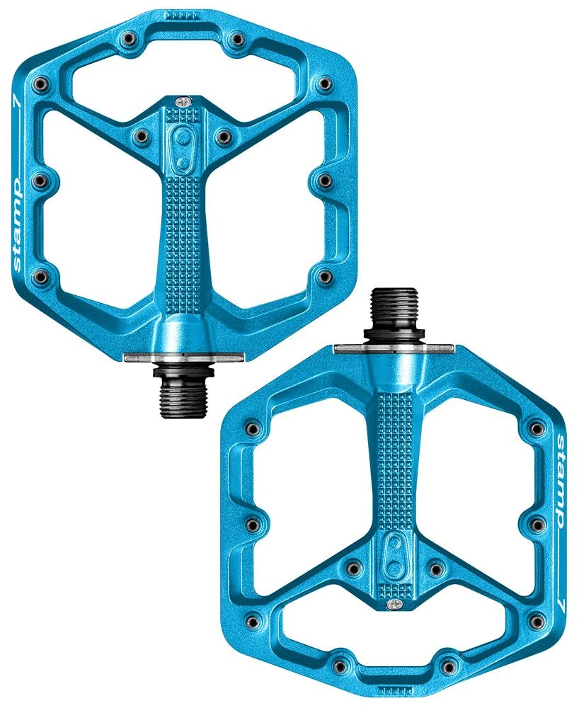 Los Stamp 7 de Crankbrothers son unos pedales de plataforma cóncava de nivel profesional. Con 10 clavijas ajustables por lado, nunca perderás el contacto con tus pedales, por muy extremo que sea el camino.