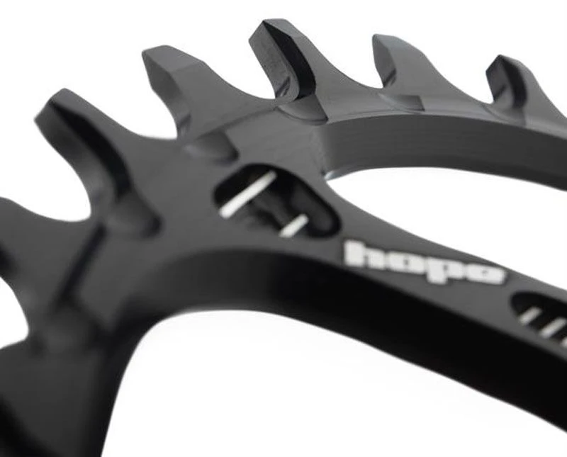 Plato Direct Mount Boost mecanizado por CNC de Hope con el nuevo perfil de dientes Narrow Wide, especialmente diseñado para su uso con cadenas de 1 x 9 velocidades, 1 x 10 velocidades, 1 x 11 velocidades y 1 x 12 velocidades.
