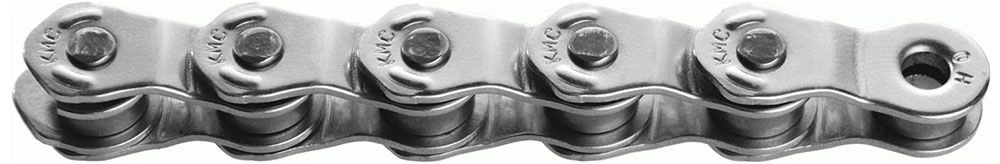 La cadena HL1 Wide Singlespeed de KMC con medios eslabones y una superficie niquelada para BMX, sistemas de engranajes de buje y otros sistemas de una sola velocidad que requieren una transmisión directa de la potencia.