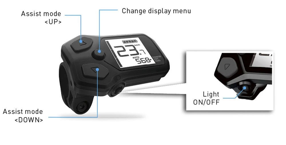 Con un menú sencillo y compacto, el ciclocomputador SC-E5003 ofrece una pantalla clara que ilustra las distintas funciones del sistema SHIMANO STEPS e-bike. El dispositivo también funciona como un interruptor de apoyo, permitiendo al ciclista ajustar el nivel de apoyo con botones grandes y fáciles de encontrar.