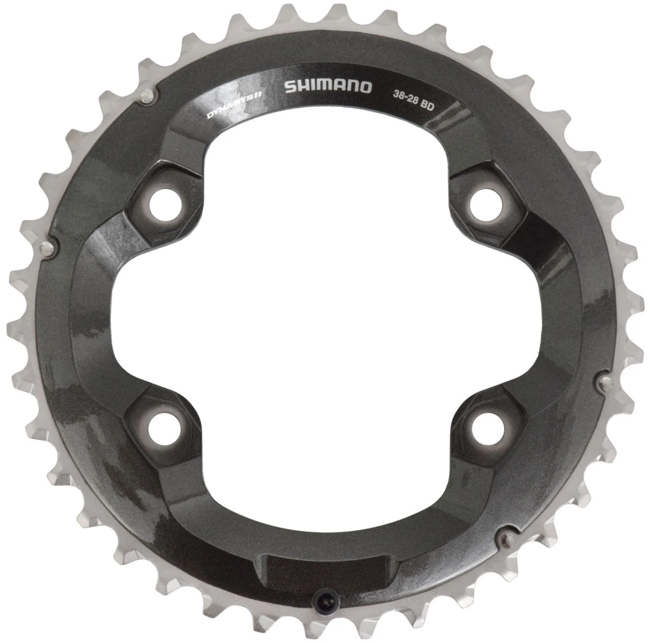 Plato Shimano XT de 11 velocidades con 38 dientes y círculo de tornillos de 96 mm para bielas FC-M8000 de 2 velocidades (38-28).