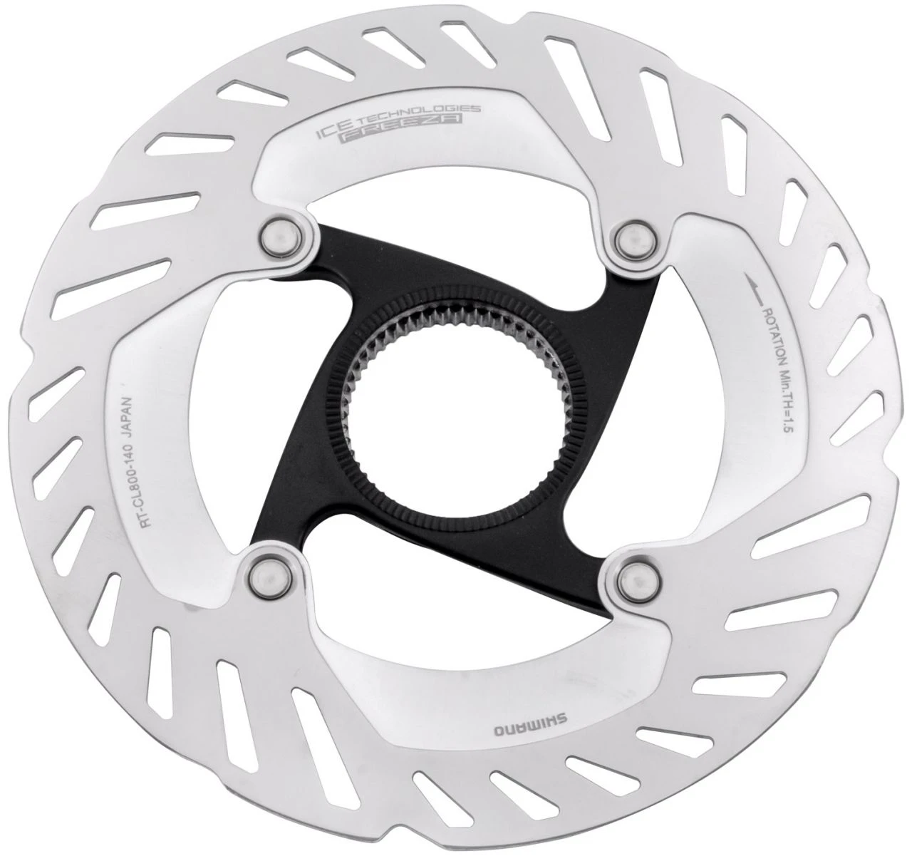 Los discos de freno compactos y ligeros RT-CL800 de SHIMANO se caracterizan por una disipación del calor especialmente rápida gracias al sistema de gestión del calor FREEZA de ICE TECHNOLOGIES. El diseño CENTER LOCK de SHIMANO hace que el montaje y desmontaje de los discos de freno sea un juego de niños.