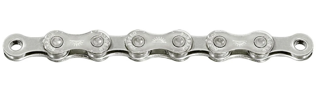 La duradera cadena SunRace CN10A de 10 velocidades con 116 eslabones para sistemas de cambio de 10 velocidades Sram/Shimano. Incluye candado de cadena Easy Link.
