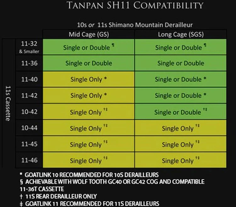 - El Tanpan 11 es compatible con cambios de carretera Shimano de 11 velocidades y optimizado para cambios de montaña Shimano de once velocidades (incluye el nuevo Dura Ace 9100)