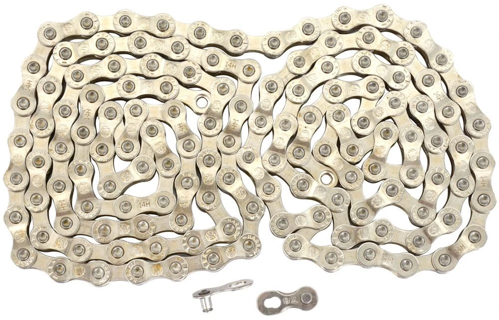 Esta cadena de 8 velocidades es extremadamente eficiente y soporta fácilmente las altas cargas de las transmisiones de las bicicletas eléctricas.